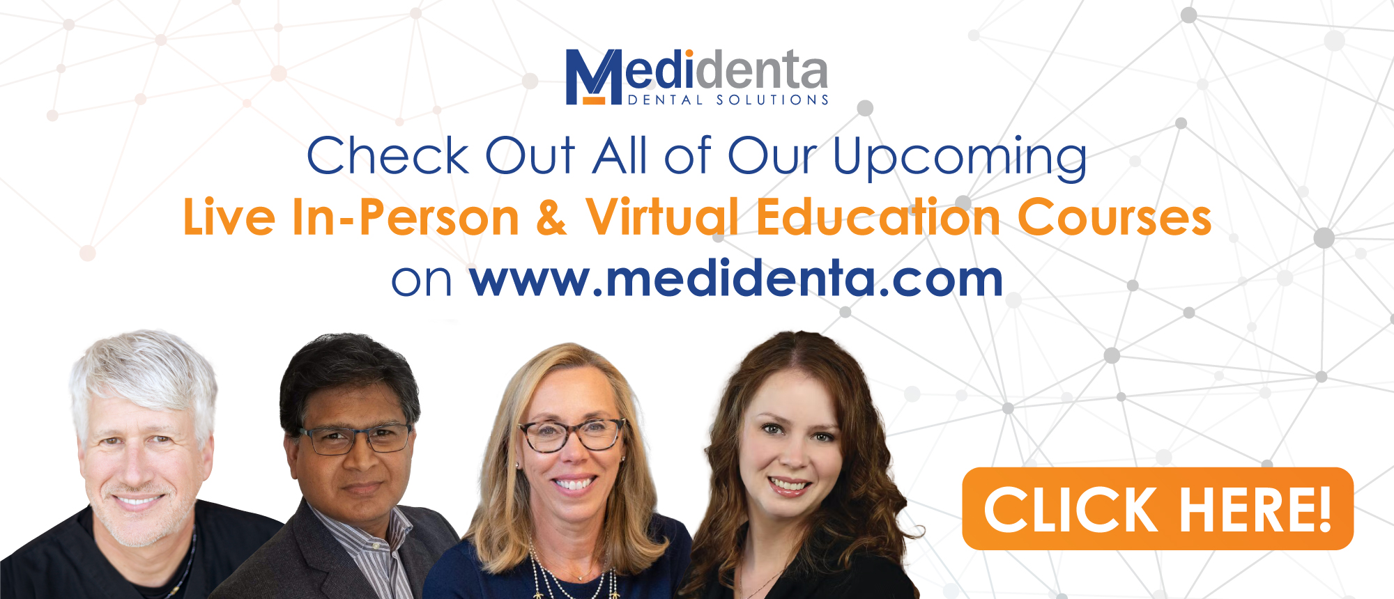 All upcoming courses are listed exclusively on www.medidenta.com/education. Click the banner above to view the full schedule and register today.