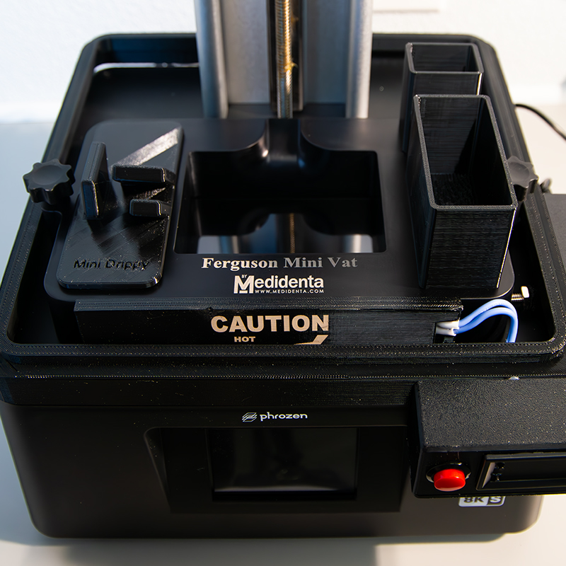 The Ferguson Mini Vat includes several components that streamline your dental 3D printing workflow, keeping your workspace clean and organized.